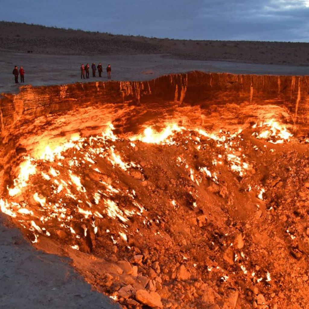 Un pozo de gas natural que lleva ardiendo desde 1971… y sigue encendido. De noche, el resplandor es hipnótico y un poco inquietante.